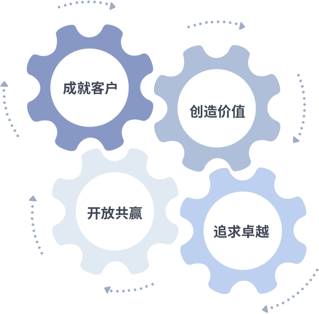 成就客户是一切决策的出发点,创造价值是衡量所有工作的标准,追求卓越是leyu乐鱼做事做人的态度,开放共赢是leyu乐鱼的格局也是最终的结果。价值观的齿轮环环相扣,推动着组织里的每个人不断向前。